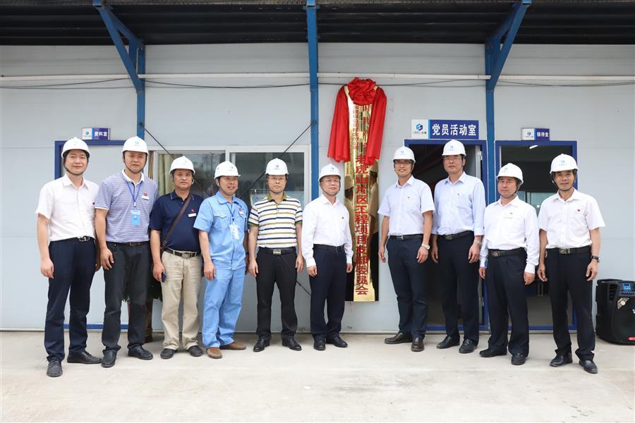 賴(lài)海標(biāo)與項(xiàng)目黨支部書(shū)記談笑共同為支部成立揭牌