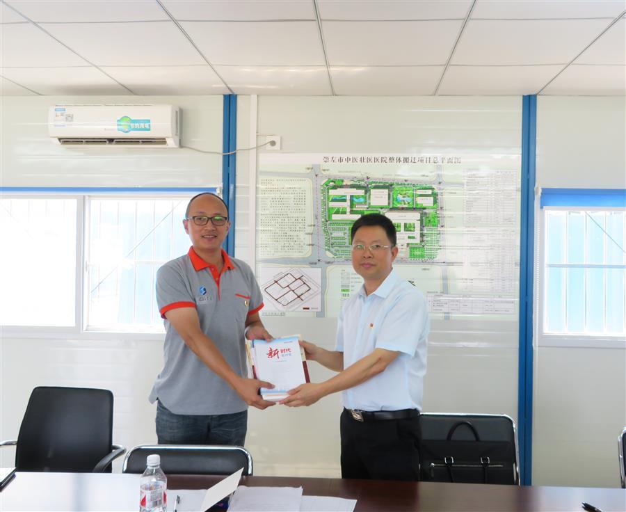 5月24日上午,公司崇左片區(qū)項(xiàng)目聯(lián)合黨支部揭牌儀式在崇左市中醫(yī)壯醫(yī)醫(yī)院整體搬遷項(xiàng)目主體工程項(xiàng)目部舉行,公司黨委副書記、紀(jì)委書記、工會(huì)主席賴海標(biāo)和項(xiàng)目聯(lián)合黨支部書記鄧牧共同為黨支部成立揭牌。揭牌儀式由公司組織人事處處長(zhǎng)梁金峰主持。公司相關(guān)職能部門、分公司代表和崇左片區(qū)各項(xiàng)目部成員參加揭牌儀式。