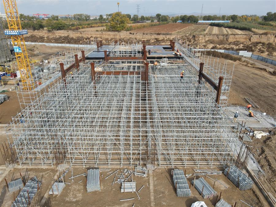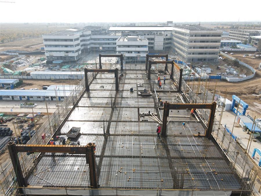 在施工現(xiàn)場,到處可見建筑工人們忙碌的身影,大家分工合作,井然有序地進行病房北樓梁板鋼筋綁扎、水電消防線管預埋、鋼結(jié)構(gòu)吊裝、醫(yī)技區(qū)東段盤扣架搭設、汽車坡道混凝土澆筑等工作面施工,各作業(yè)面協(xié)同推進,現(xiàn)場掀起“大干”熱潮。