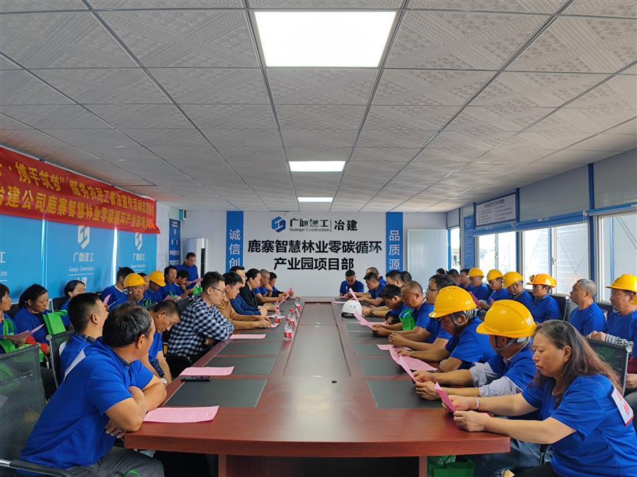 柳州市總工會(huì)、廣西正泰和律師事務(wù)所、公司工會(huì)、第九分公司、設(shè)備安裝分公司相關(guān)人員及項(xiàng)目現(xiàn)場(chǎng)管理人員、農(nóng)民工近140人參加。