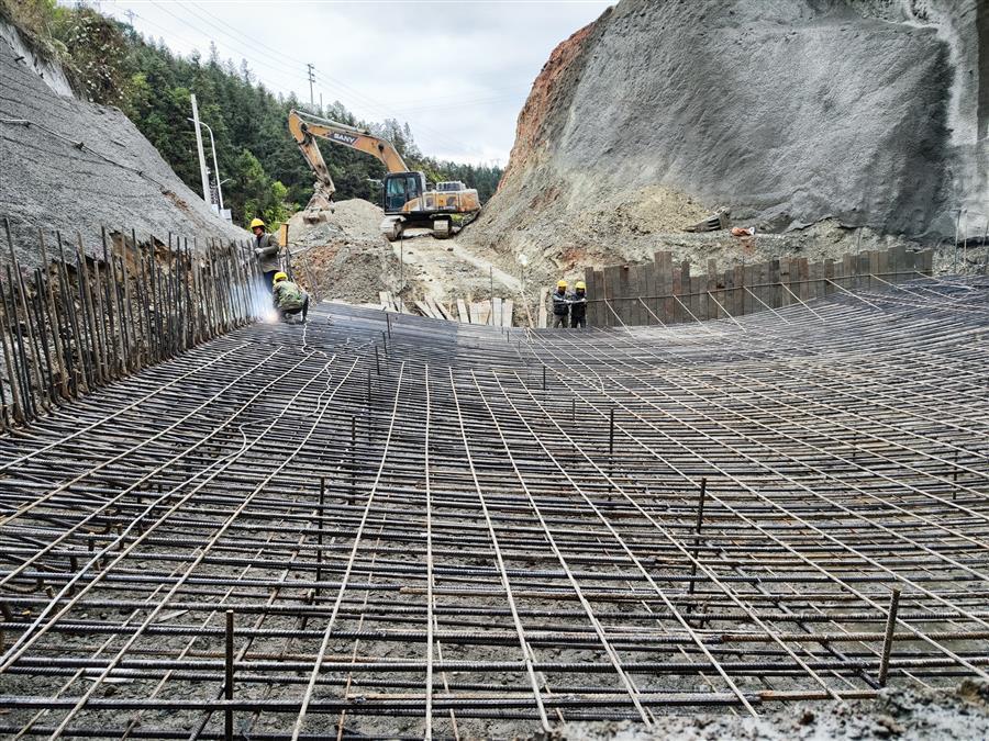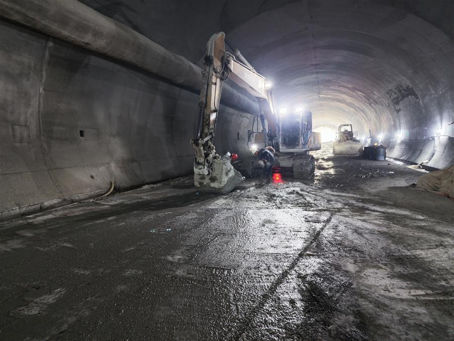 在施工現(xiàn)場(chǎng),機(jī)器轟鳴,挖掘機(jī)正在對(duì)隧道明洞部分的土方進(jìn)行開挖,出渣車有序作業(yè)外運(yùn)渣土;工人們正有條不紊地焊接、搭建地連墻鋼筋籠;在隧道深處,一臺(tái)挖掘機(jī)在操作人員的操控下,正揮動(dòng)著“手臂”,配合著工人在對(duì)隧道路面做清理?!盀榧涌祉?xiàng)目施工進(jìn)度,我們采取人員倒班、設(shè)備不停,白天晚上不間斷施工?!表?xiàng)目經(jīng)理介紹說(shuō),目前隧道工程已全面貫通,爭(zhēng)取在春節(jié)前完成仰拱和墻供二襯砼澆筑。