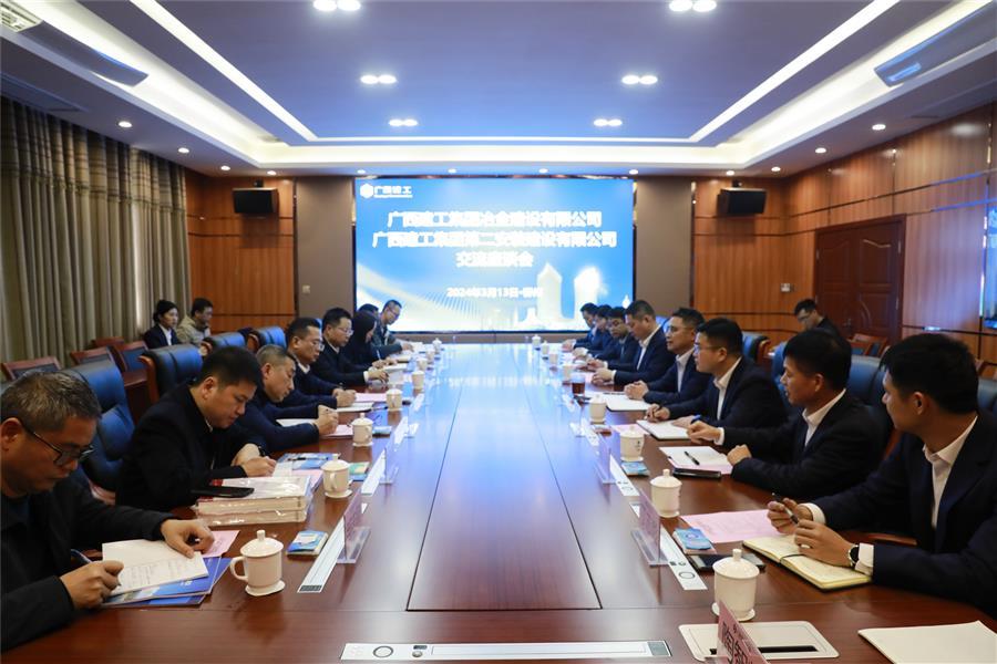 3月13日,冶建公司董事長(zhǎng)、黨委書(shū)記覃振華帶隊(duì)到廣西建工集團(tuán)第二安裝建設(shè)有限公司開(kāi)展工作交流。二安公司董事長(zhǎng)、黨委書(shū)記歐志永,副總經(jīng)理陶興南,冶建公司黨委副書(shū)記、紀(jì)委書(shū)記、工會(huì)主席賴(lài)海標(biāo)參加。