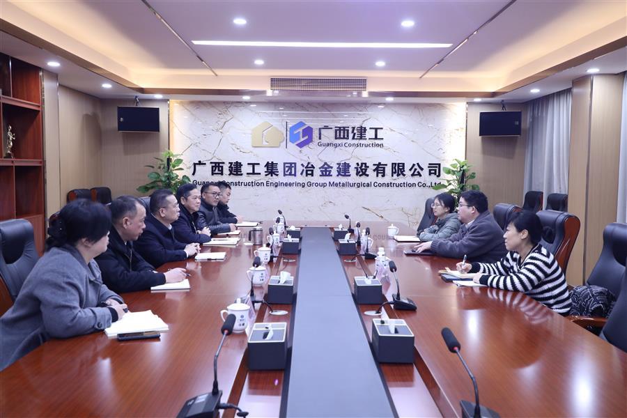 2月24日,柳州市住建局副局長韋融軍率隊到冶建公司調研指導工作,并與公司董事長、黨委書記覃振華,總經理、黨委副書記蒙勝益,領導班子成員何勇、韋克雪座談交流。