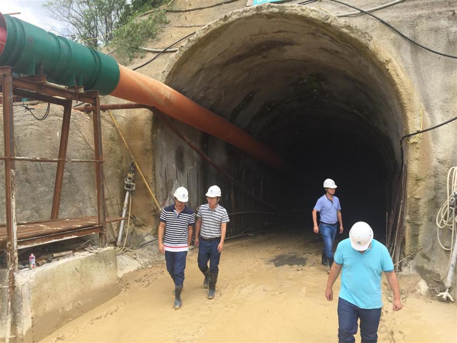 廖副總一行首先實地察看了隧洞進口、3#支洞、出洞口等項目的施工進展情況,并進洞仔細觀察和了解掌子面的圍巖地質(zhì)條件與開挖情況,認真聽取項目負責人關(guān)于當前工程建設(shè)的有關(guān)匯報。