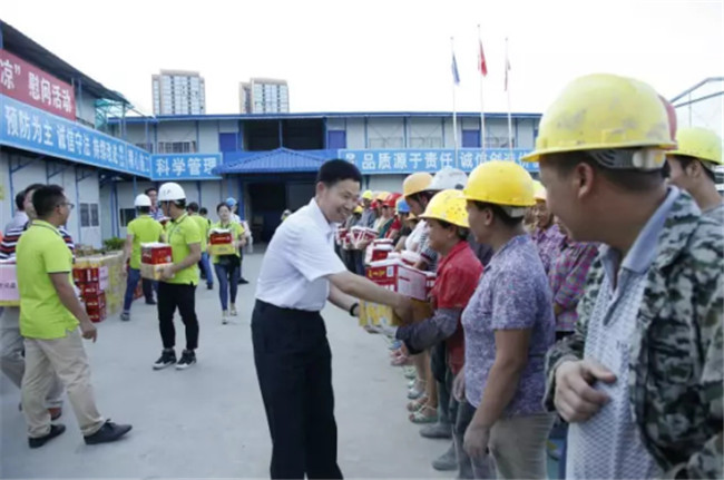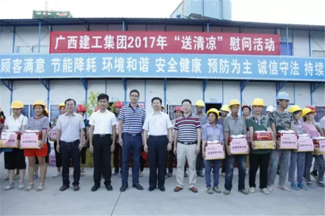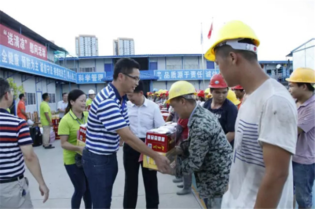 柳州市高新區(qū)科技園專家公寓樓工程由我司桂華分公司承建。8月7日下午,廣西建工集團(tuán)副總經(jīng)理侯立林冒著高溫酷暑,專程從南寧前來項(xiàng)目建設(shè)現(xiàn)場給一線職工和農(nóng)民工“送清涼”,公司領(lǐng)導(dǎo)歐志永、賴海標(biāo)、廖立波參加活動(dòng)。130多份價(jià)值9000多元的慰問品,在十多分鐘的時(shí)間里,全部發(fā)放完畢。